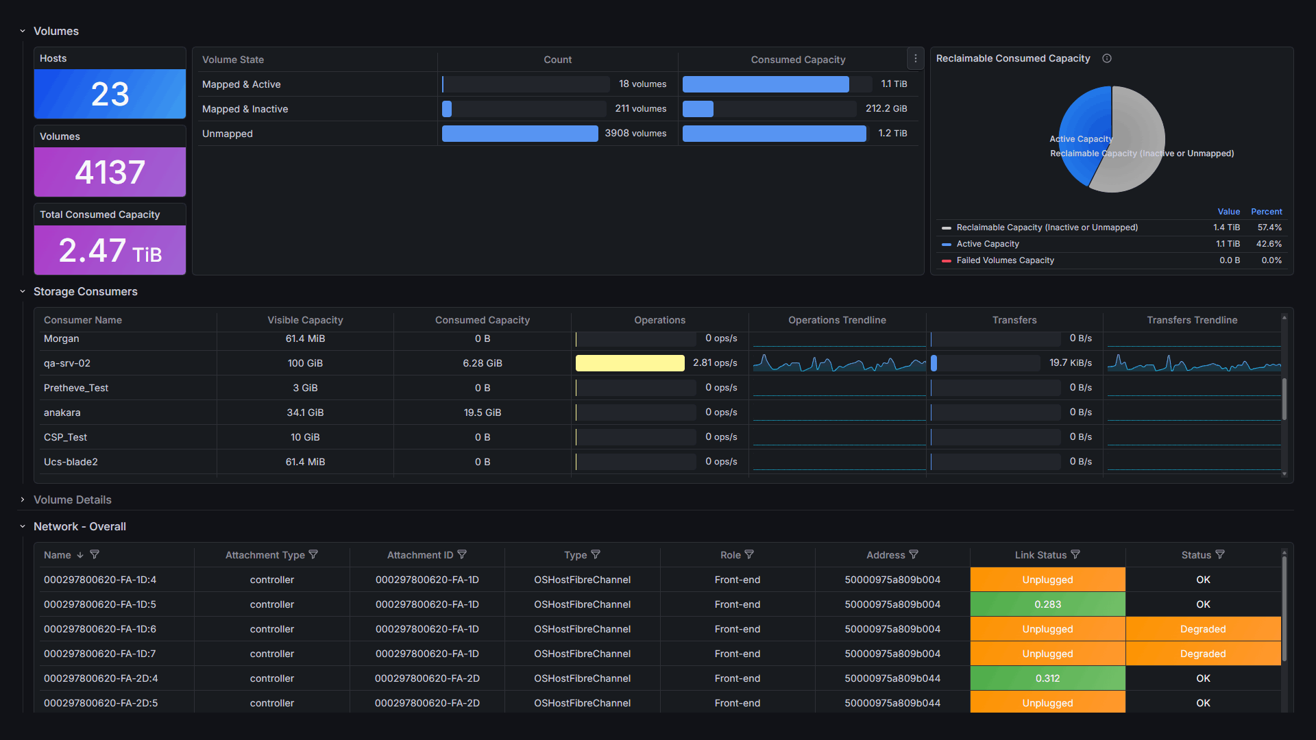 Identify cooling and environmental issues by detecting degraded or failed fans, low fan speed, and abnormal temperature or voltage conditions.Storage Health & Capacity