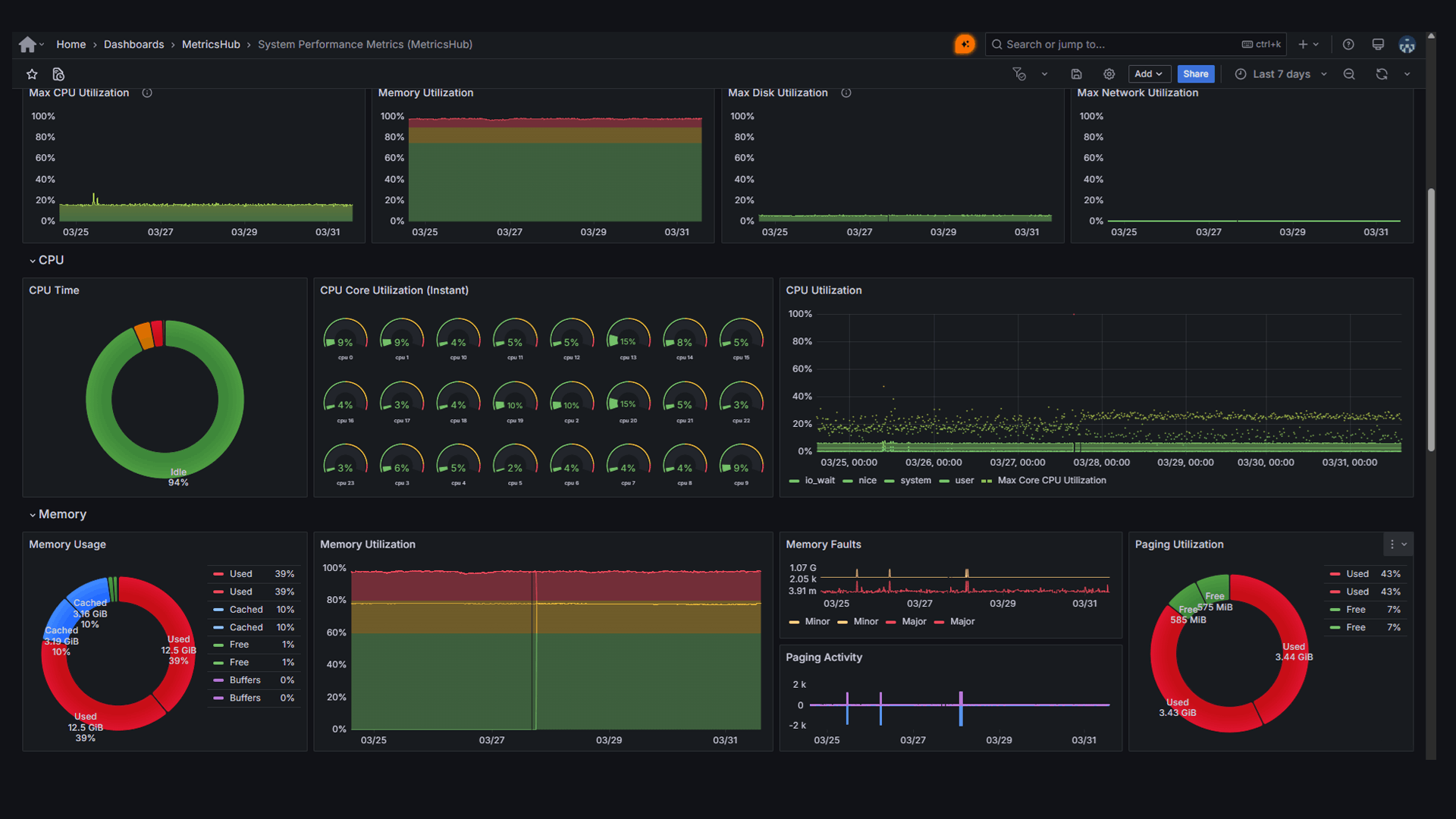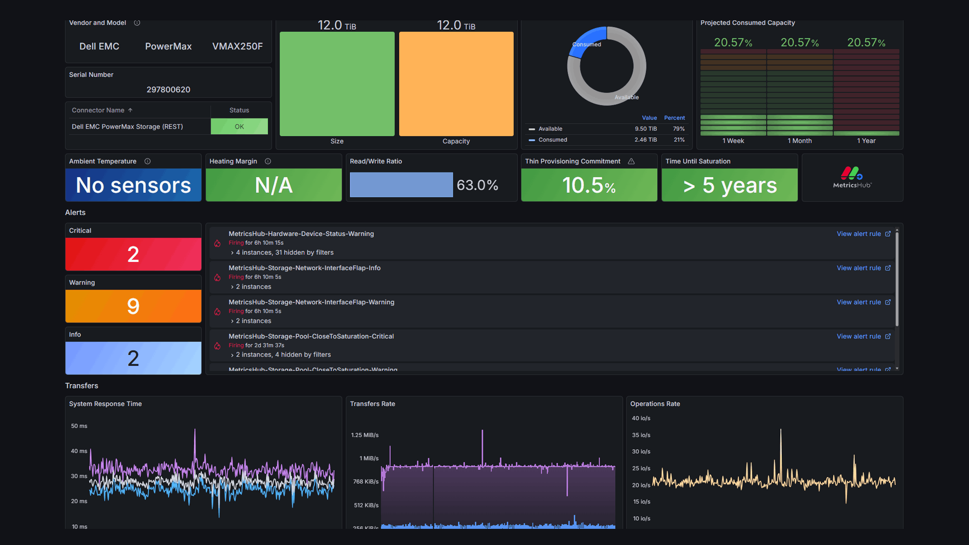 MetricsHub provides pre-built dashboards that deliver immediate visibility into system, hardware, and storage.